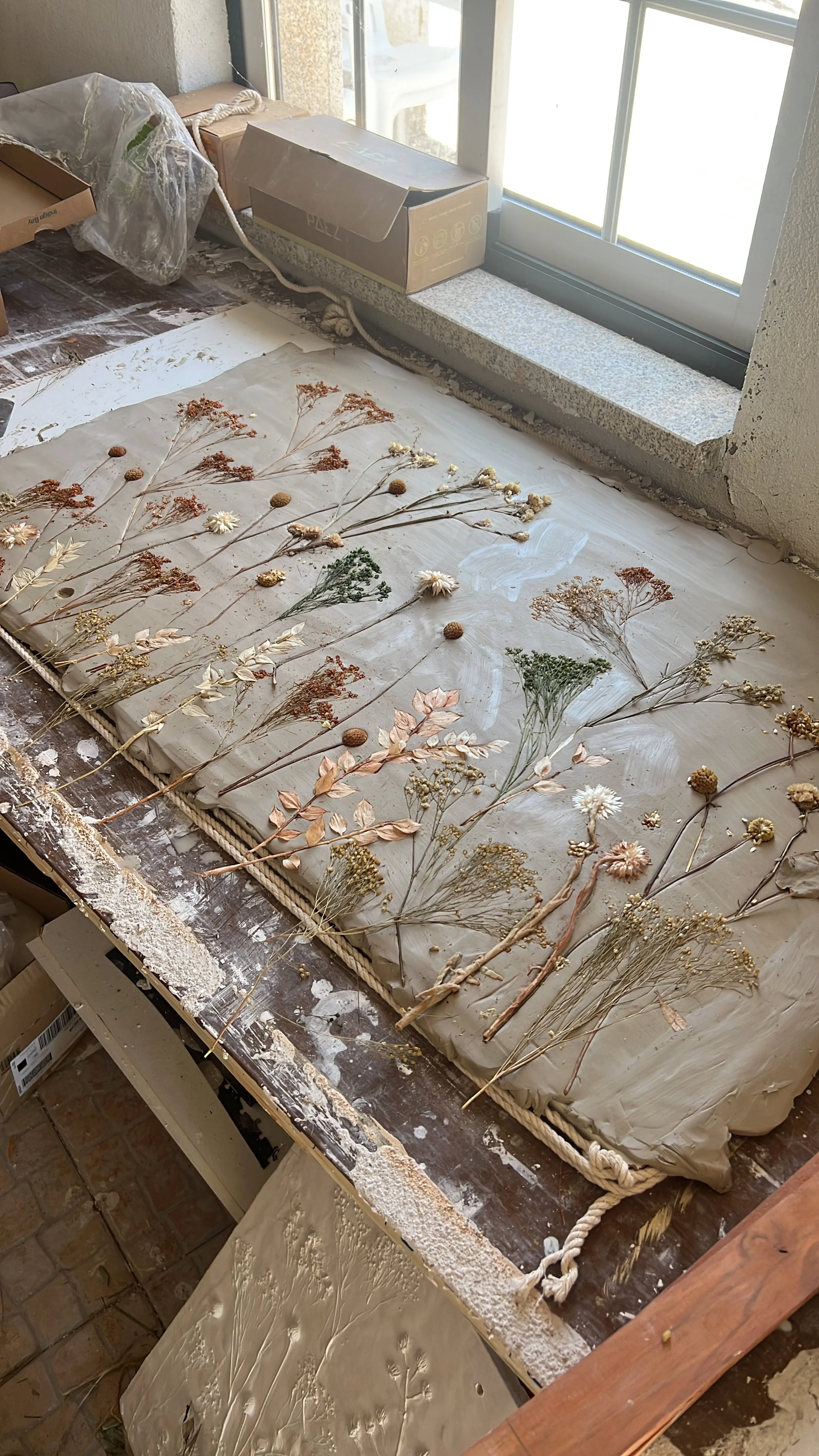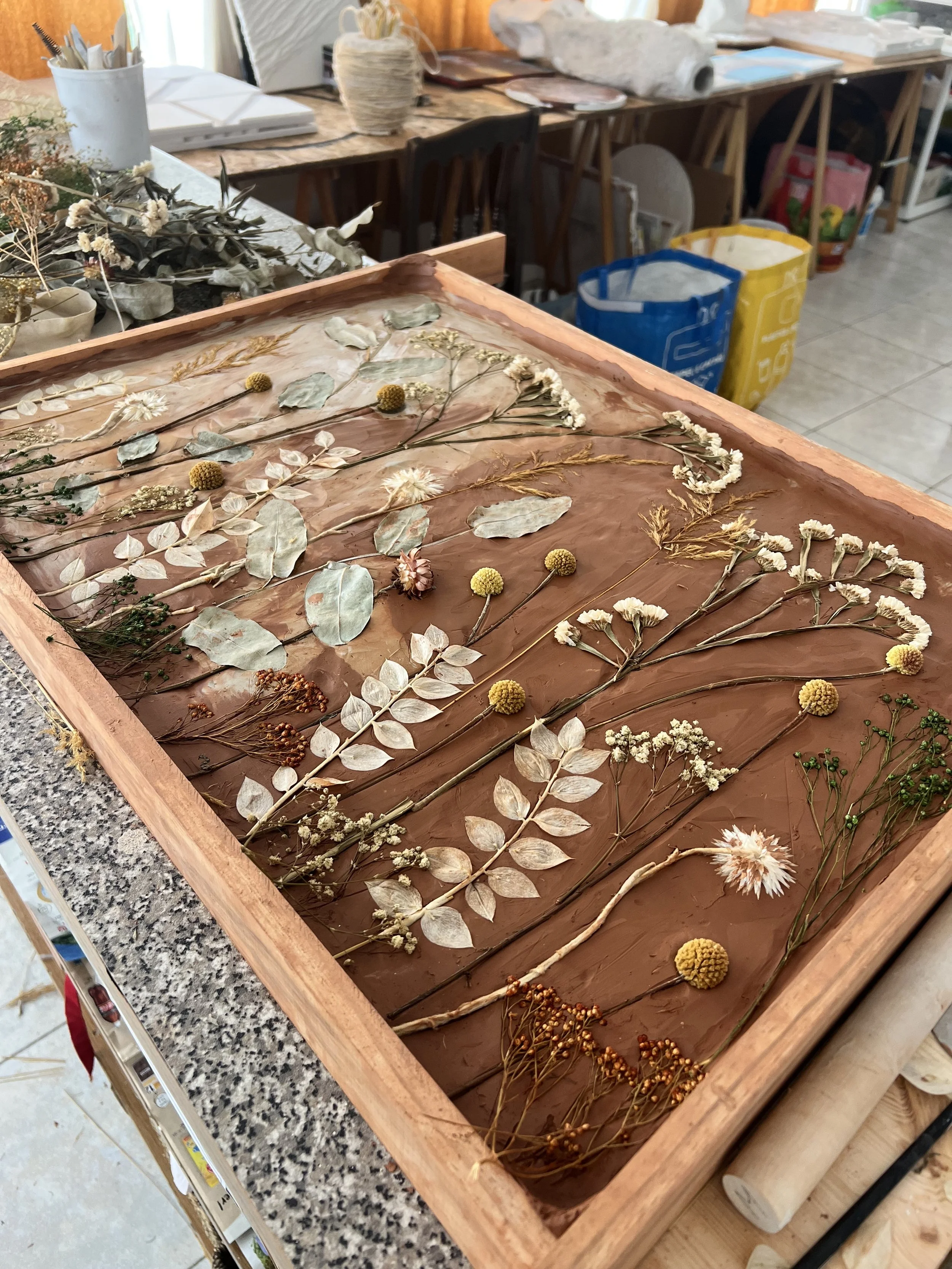 Através da estampagem das flores do teu bouquet num tabuleiro de argila cerâmica vamos transformar o testemunho do teu “para sempre” num lindo quadro decorativo em Gesso de estilo contemporâneo e única no mundo.