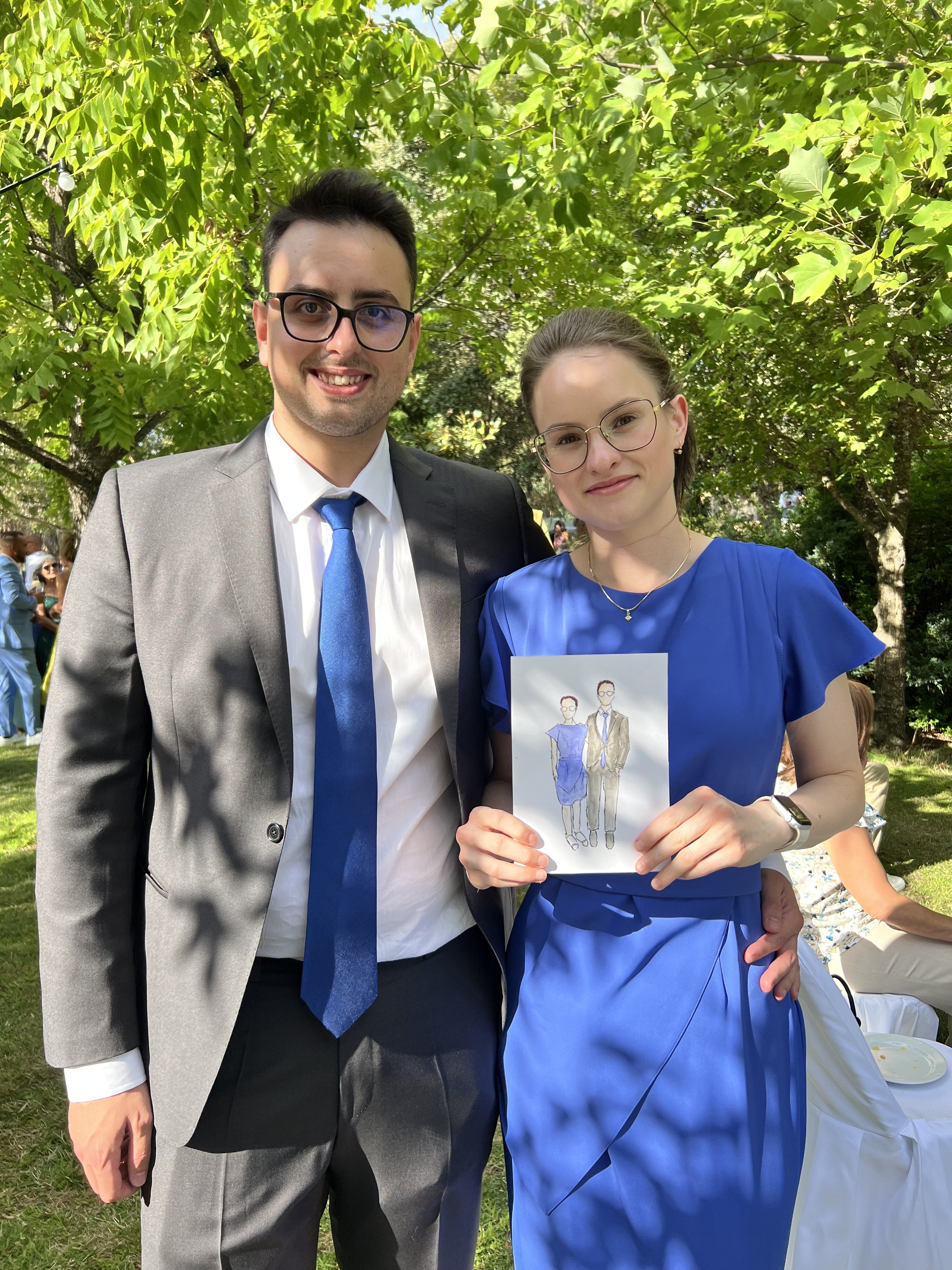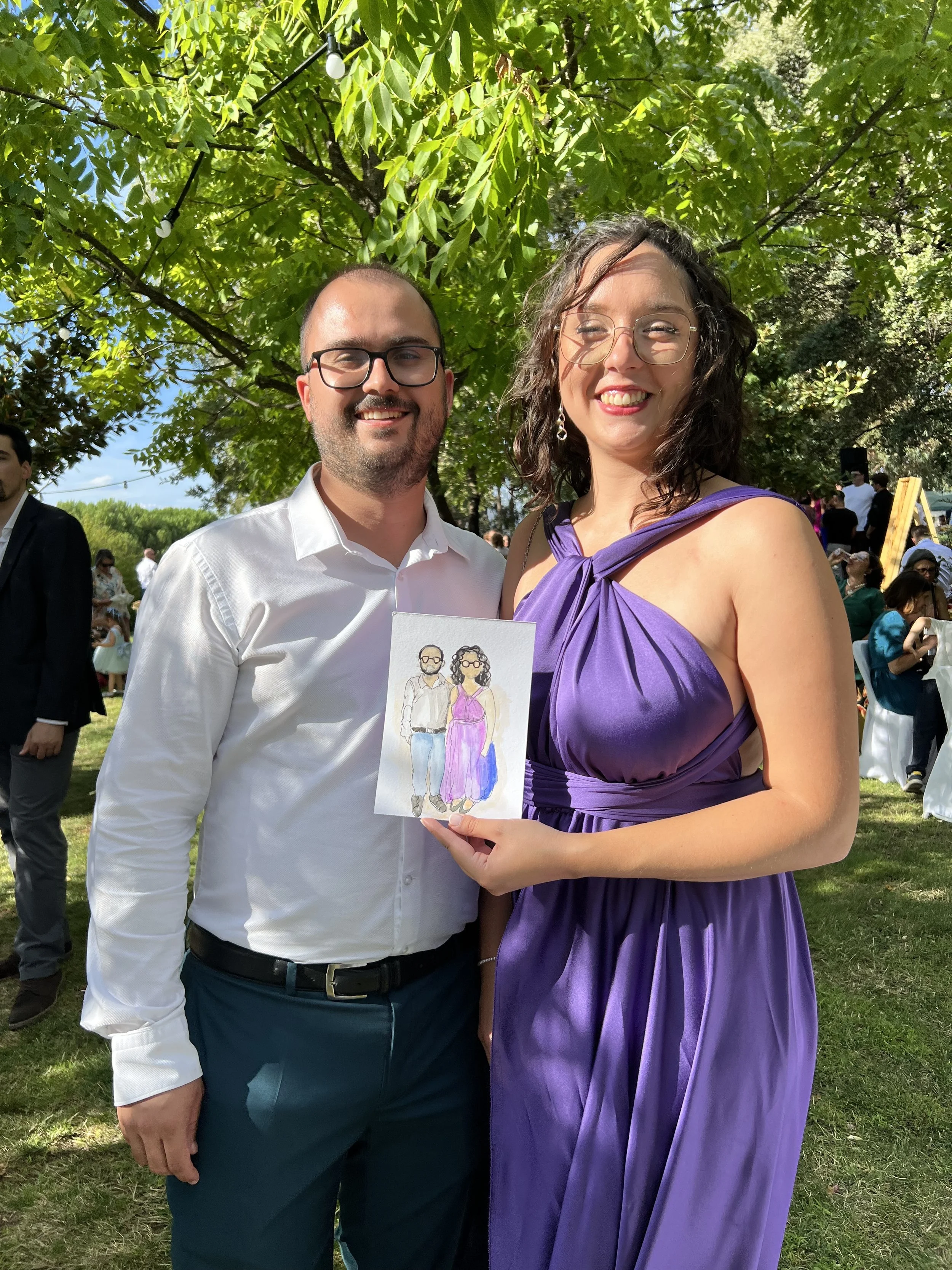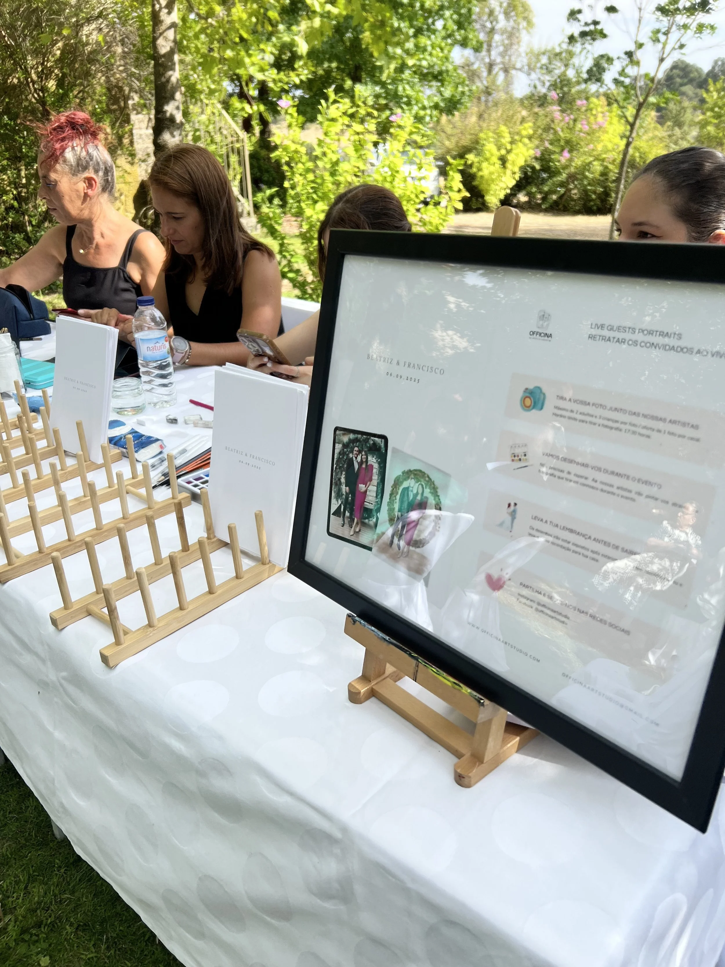Nos casamentos, os noivos não precisam de perder tempo a ir de mesa em mesa a entregar a lembrança. Cada convidado recolhe o seu sketch assim que está terminado e fica logo com a sua lembrança.