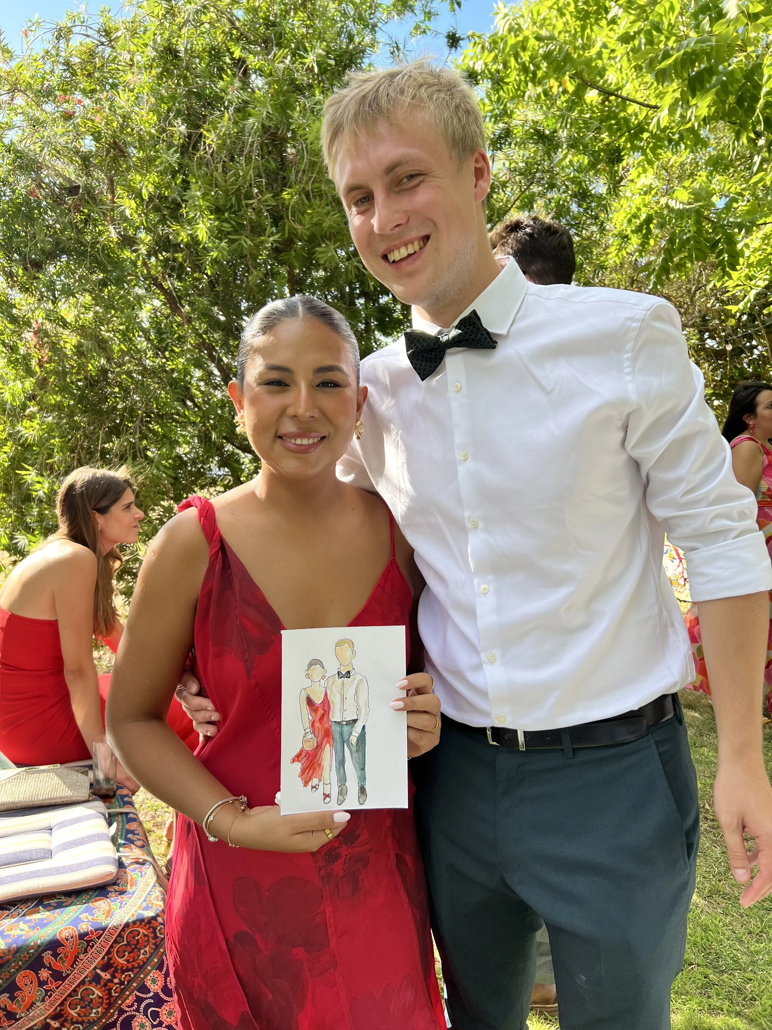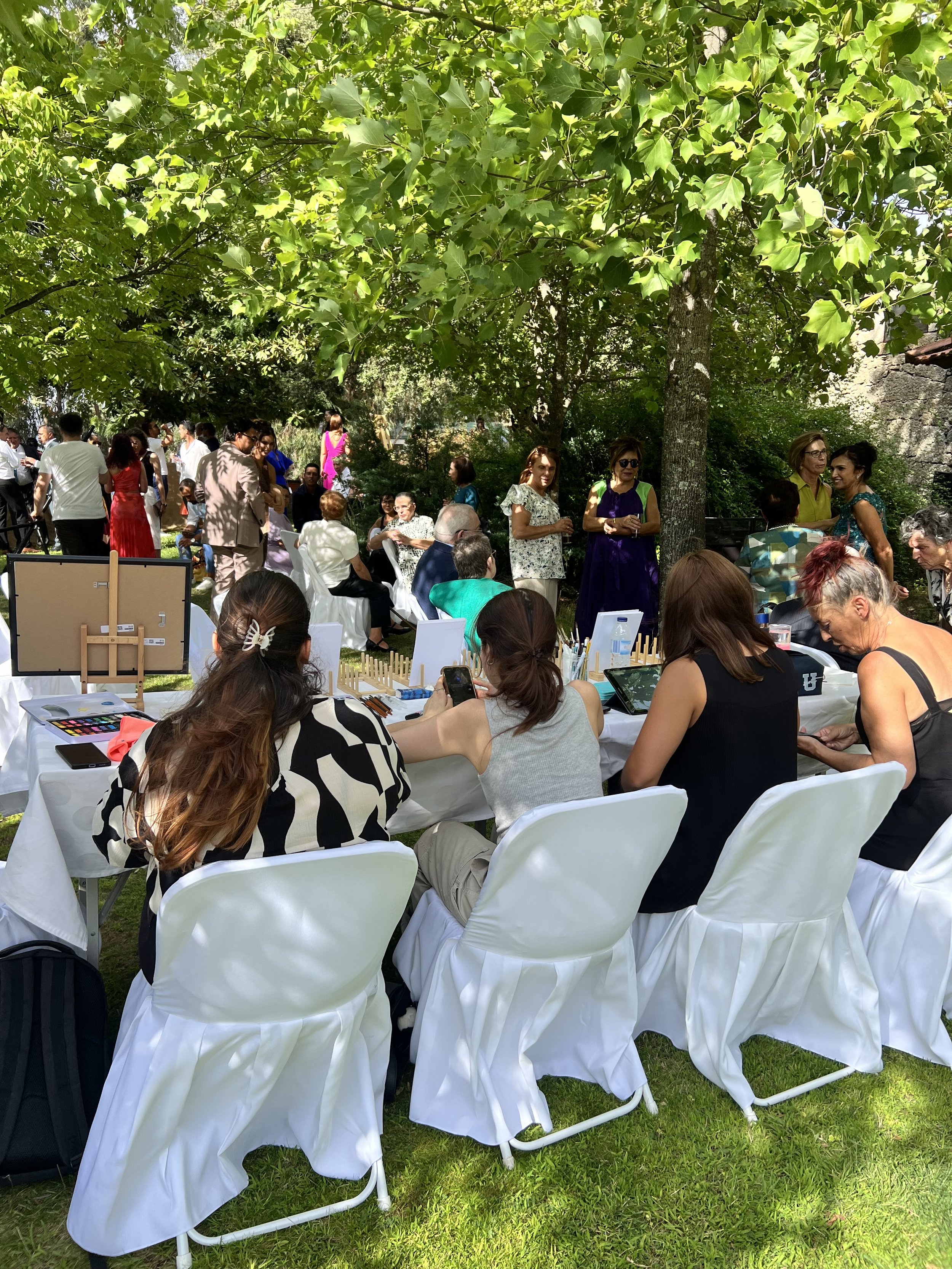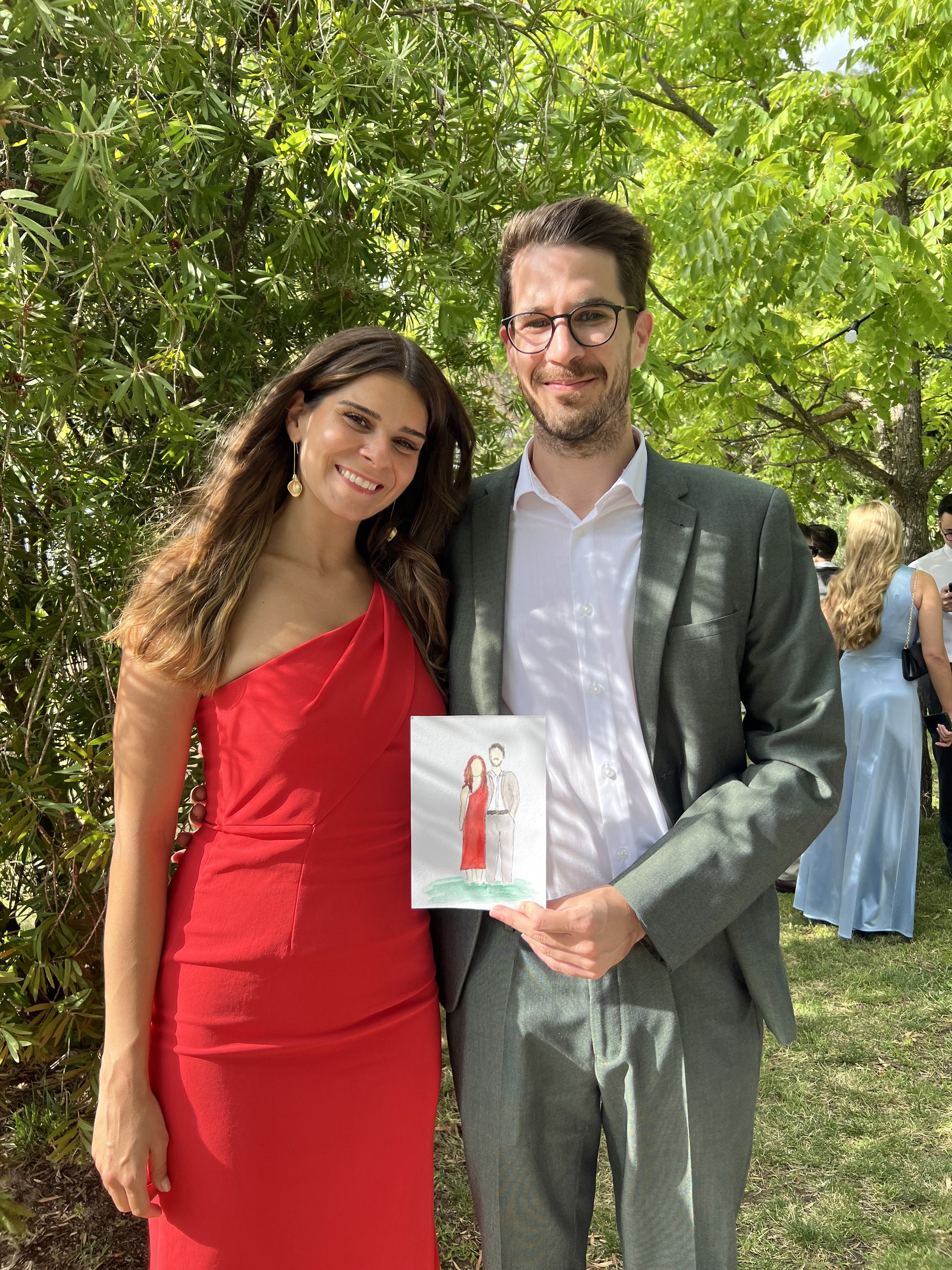 Nos casamentos, os noivos não precisam de perder tempo a ir de mesa em mesa a entregar a lembrança. Cada convidado recolhe o seu sketch assim que está terminado e fica logo com a sua lembrança.