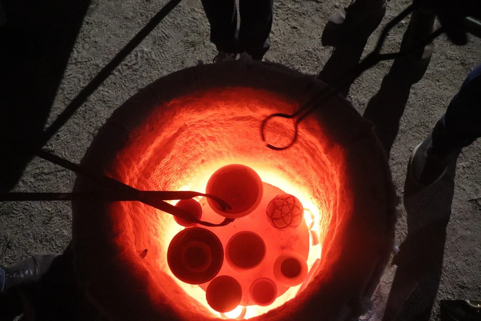 - Depois de alguns minutos, as peças são retiradas da câmara de redução, arrefecem ao ar e são limpas com esponja e água. O resultado final é imprevisível e único: nenhuma peça sai igual à outra.